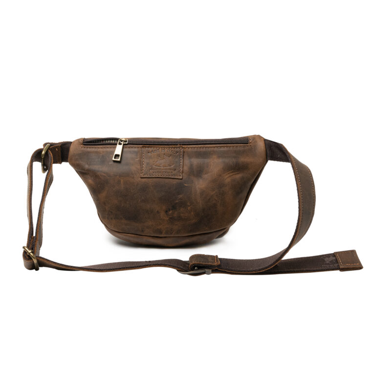 Pratico marsupio in cuoio ingrassato color testa di moro.