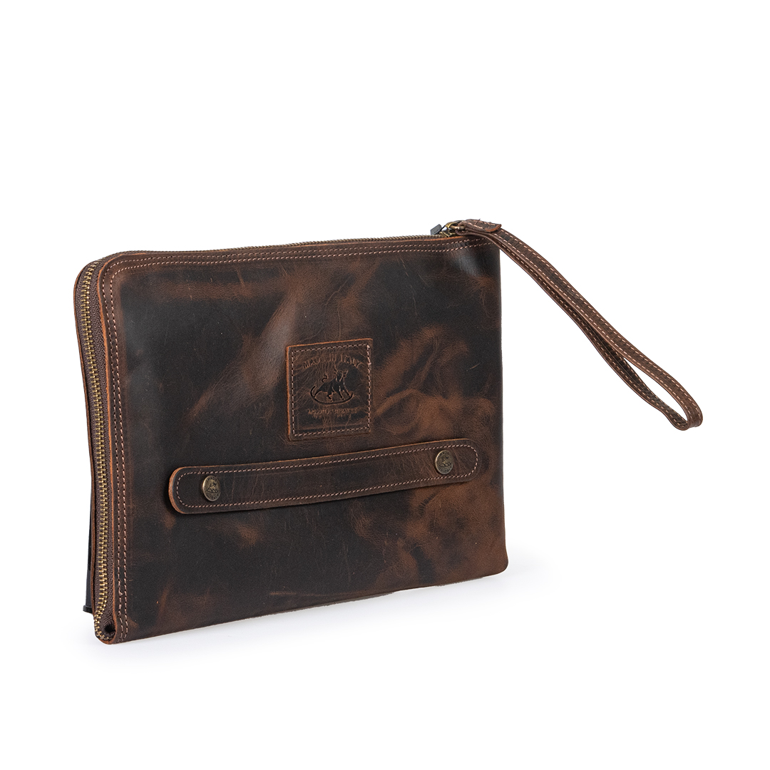 Pochette da uomo molto di tendenza tra i giovani. Questo pratico astuccio portatutto è completo di asola per una facile impugnatura e di maniglia da polso. Oltre allo scomparto principale, la pochette ha uno scomparto aggiuntivo e una tasca extra a zip.