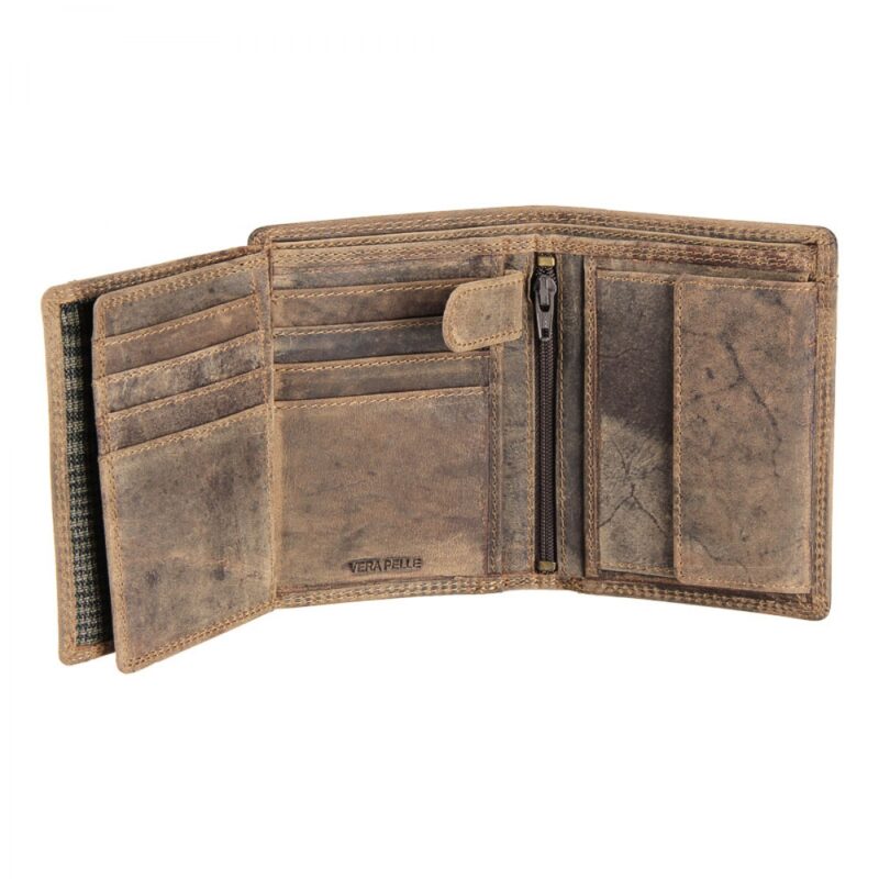 Questo prodotto si presenta da subito molto semplice e funzionale, con una tasca portamonete, due tasche porta banconote, una tasca a retina, due porta documenti ed una cerniera centrale che apre altre due tasche.