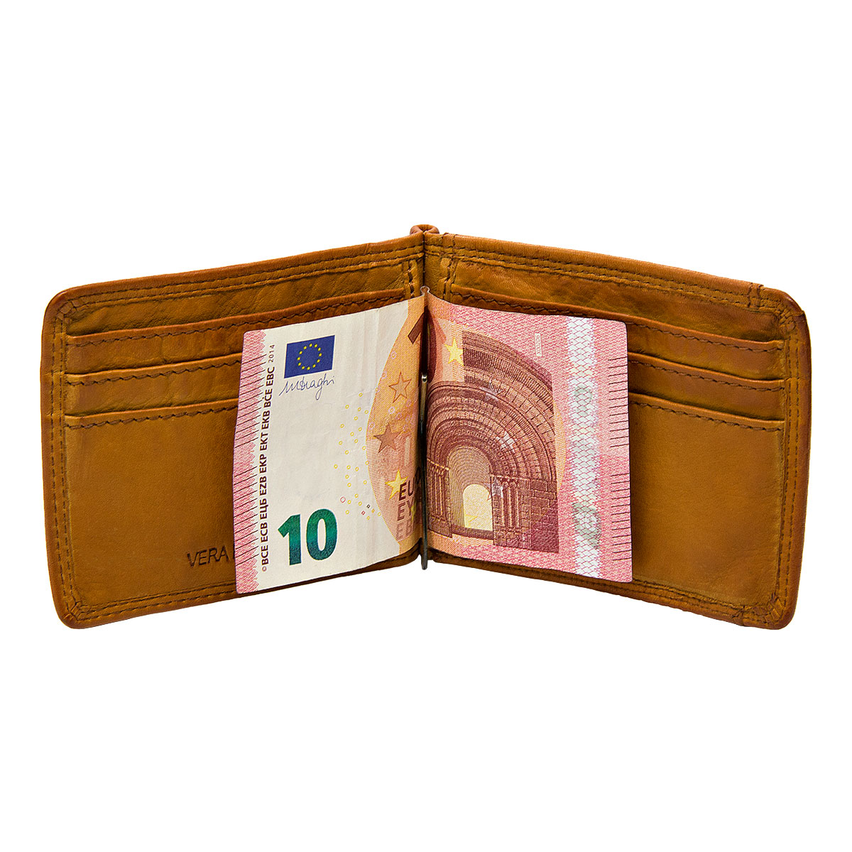 Portafoglio uomo, in pregiata e morbida pelle di vitello lavato, con molla porta banconote e pratici scomparti porta card e tessere.