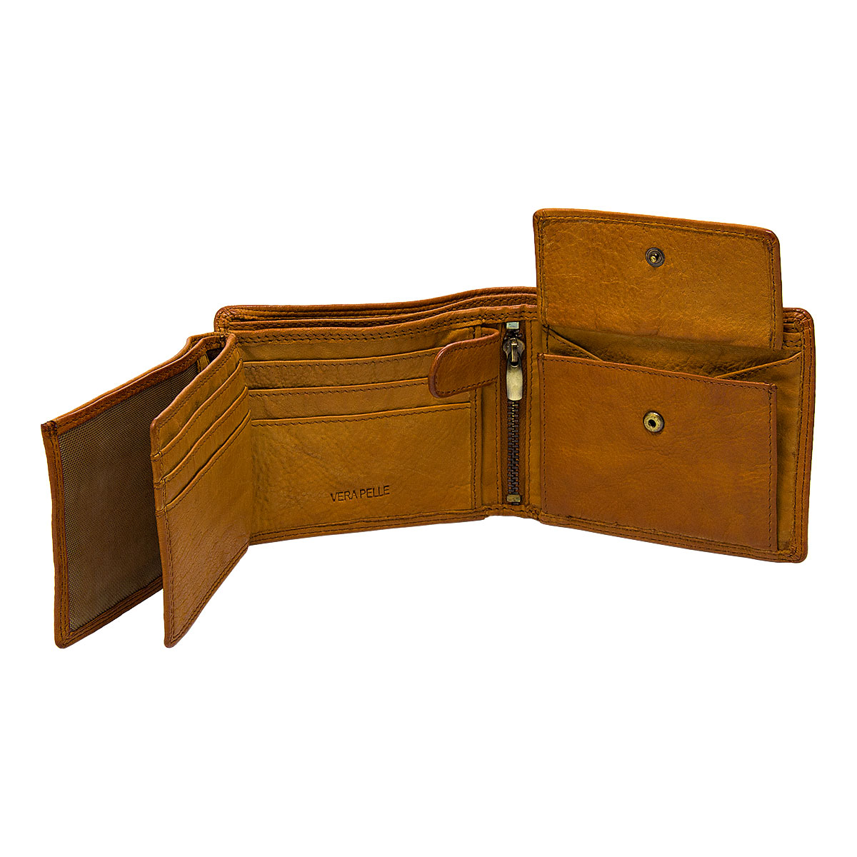 Pratico e maneggevole portafoglio da uomo in cuoio, con tasca porta banconote, sei scomparti porta card e tessere.