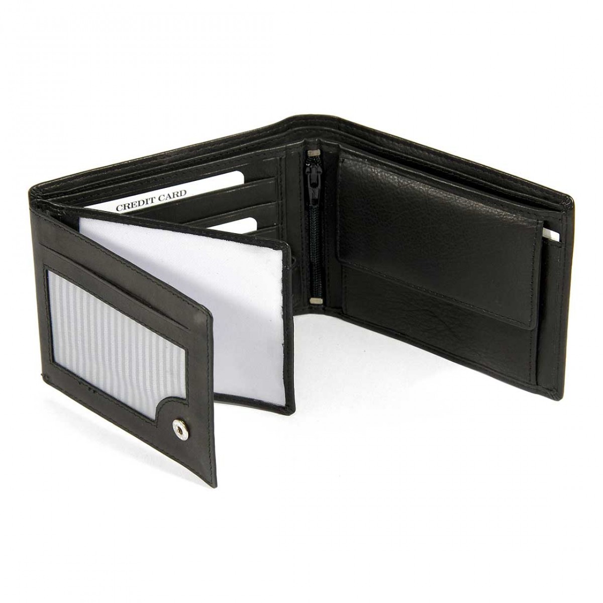 Questo portafoglio in morbida nappa, disponibile in nero e marrone, è dotato di portamonete e di un doppio scomparto per documenti/fotografie e un doppio scomparto per le tessere.