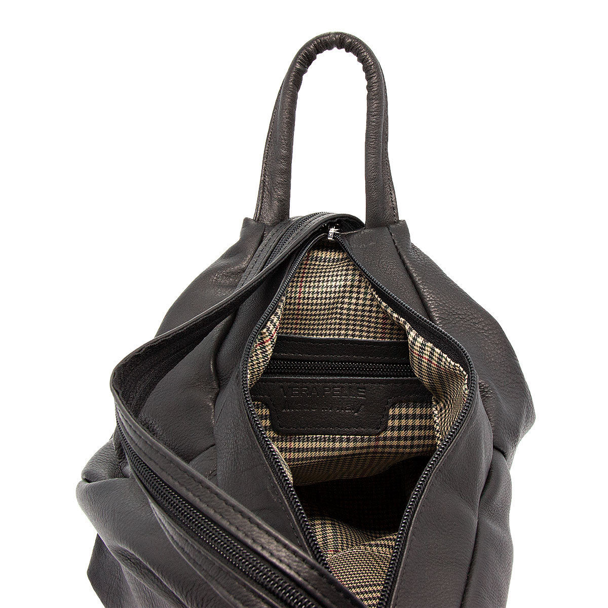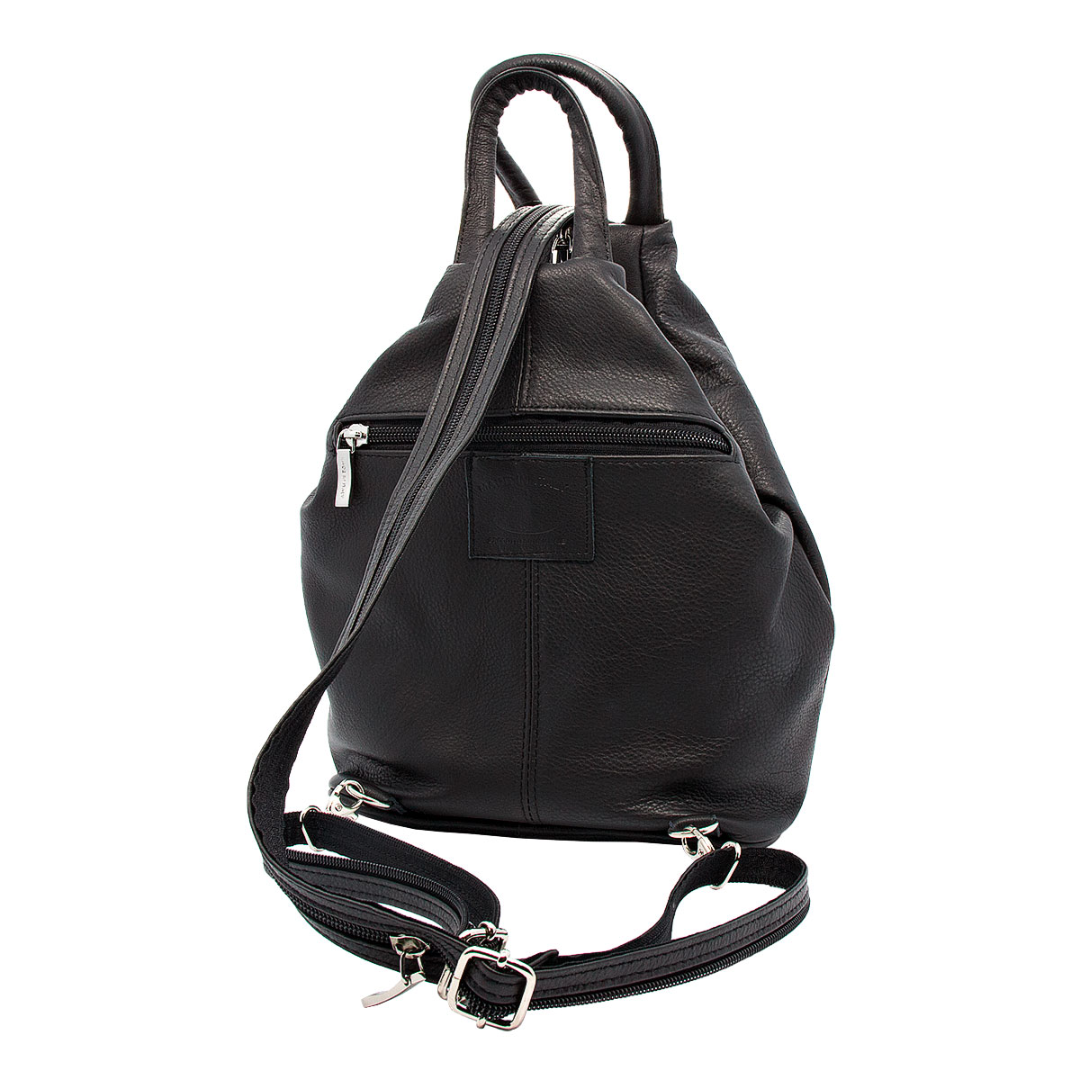 Le due spalliere in cuoio regolabili possono essere unite mediante la chiusura lampo facendo diventare lo zaino un bellissimo monospalla.